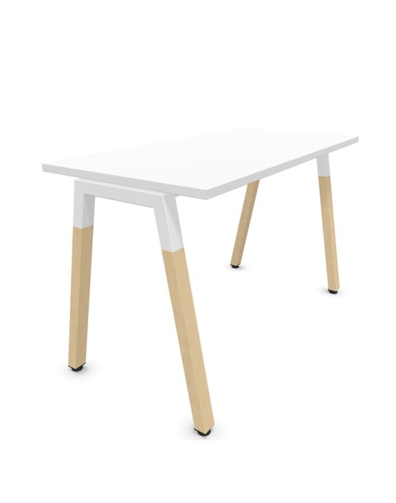 Podstawą biurka są 4 nogi w kształcie przypominającym literę "A". Górna część stelaża wykonana została z profilu stalowego, natomiast dolna - z litego drewna bukowego.