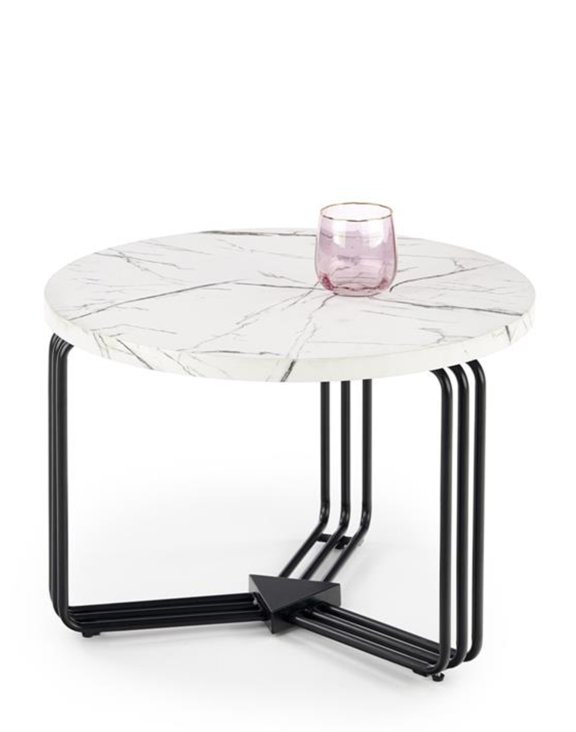 Imitacja białego marmuru w połączeniu z potrójną podstawą wybarwioną na czarny kolor sprawia, że stolik jest niezwykle elegancki, zatem sprawdzi się także we wnętrzach inspirowanych stylem industrialnym
