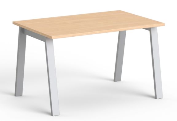 Metalowa noga w kształcie litery A nadaje biurkom lekkości, a jednocześnie jest stabilną podstawą dla blatów o rożnych kształtach i wymiarach.