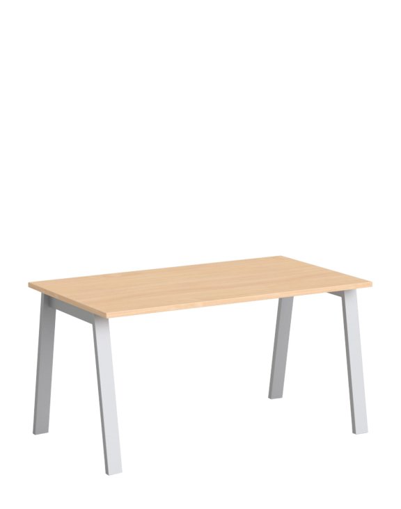 Metalowa noga w kształcie litery A nadaje biurkom lekkości, a jednocześnie jest stabilną podstawą dla blatów o rożnych kształtach i wymiarach.