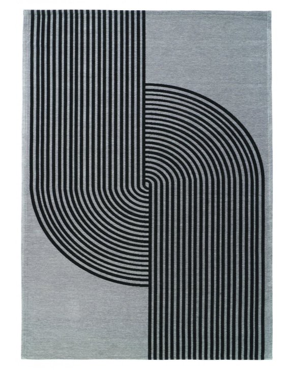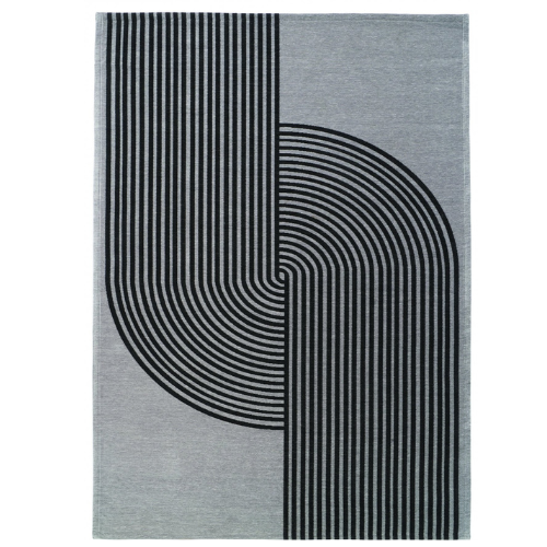 Dywan do salonu Aruba Gray marki Fargotex posiada designerki i nowoczesny wzór w kolorze czarnych, półkolistych linii.
