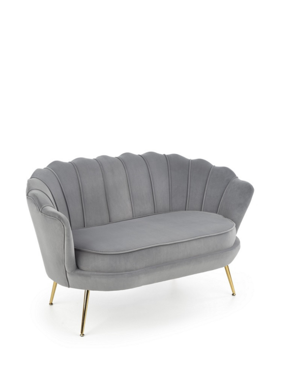 Miękka w dotyku tapicerka pięknie koresponduje ze złotym stelażem. Tworzą go cztery smukłe, metalowe nóżki.