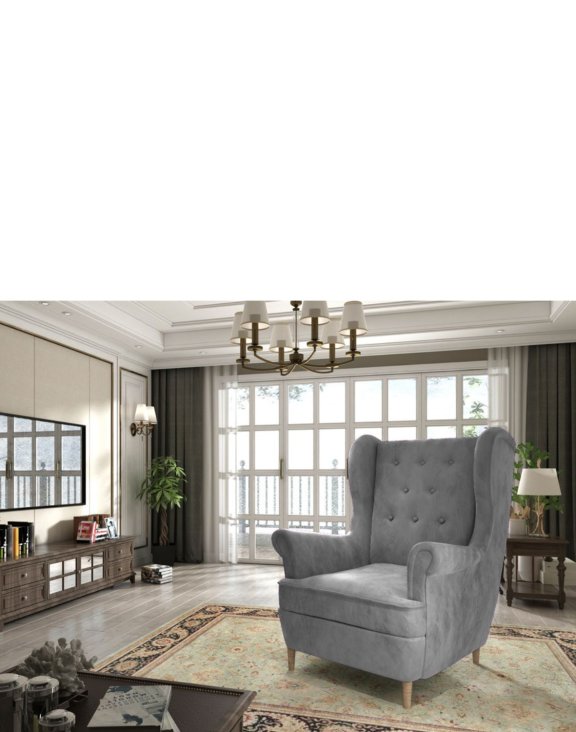 Fotel uszak Aros 1F marki Eltap to produkt o niezwykłej elegancji za którą odpowiadają ozdobne guziki na oparciu.