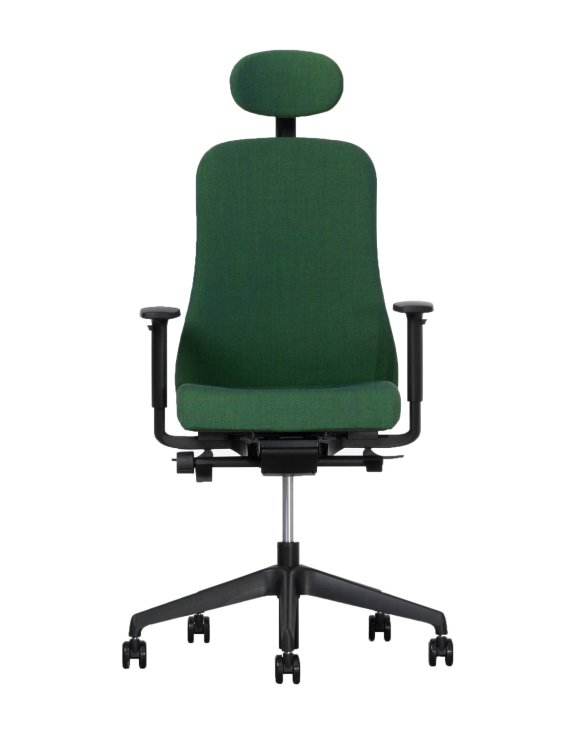 Krzesło dostępne jest również w wersji bez zagłówka oraz z jasnoszarym stelażem. Sprawdź w zakładce Produkty z Rodziny.