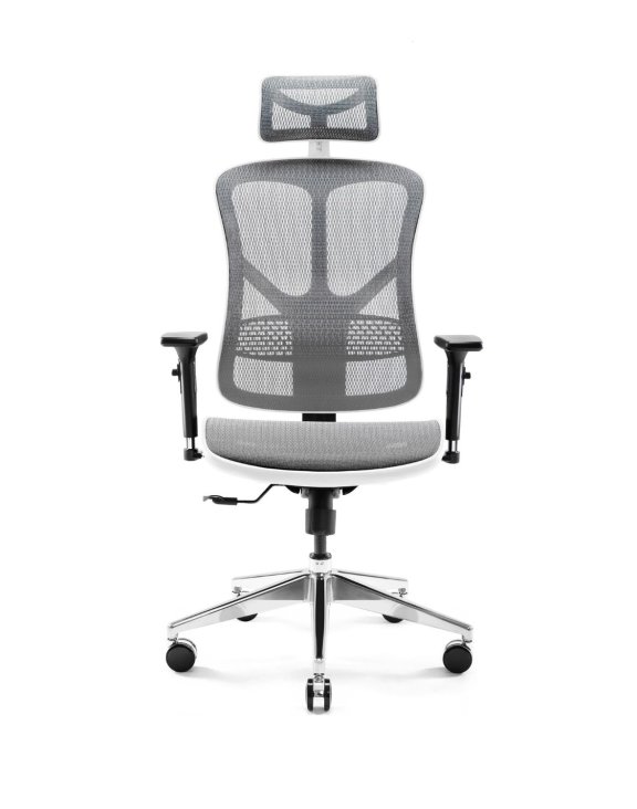 Fotel ergonomiczny Diablo V-Basic w kolorze biało-szarym, to obrotowy fotel biurowy, który świetnie prezentuje się we wnętrzu i dba o naszą prawidłową postawę.