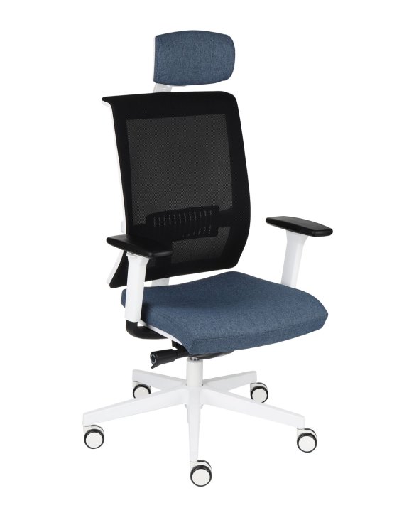 Prezentowana wersja WS HD oznacza BIAŁE (W) wykończenia (rama oparcia, podłokietniki) oraz siatkowe oparcie (S) i tapicerowany regulowany zagłówek (HD).