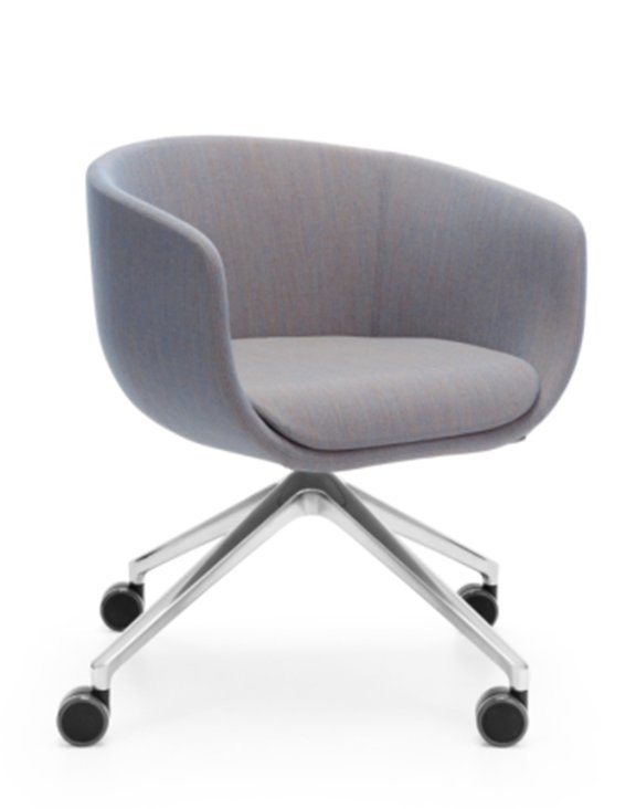 Obrotowy fotel z serii NU 20HC marki Profim z lekkim małym kubełkiem opartym na podstawie z kółkami.