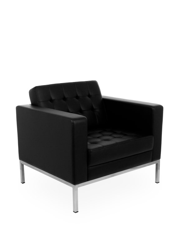 Podstawę fotela stanowią cztery nóżki połączone u góry w kwadratową formę, wykonane z chromowanej stali.