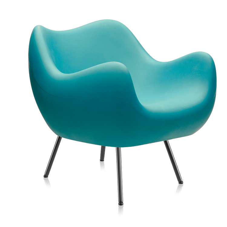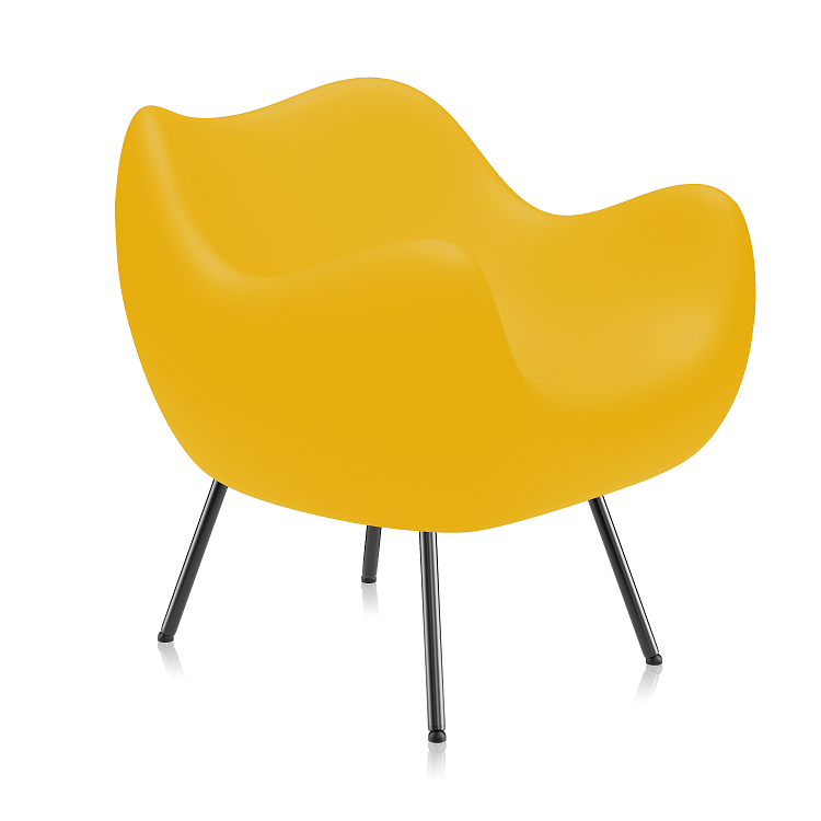 Fotel RM58 Matte marki Vzór - czysta klasyka designu. Obły kształt siedziska zwieńczono nieregularną, falistą linią, co przykuwa wzrok i stanowi oryginalny efekt wizualny.