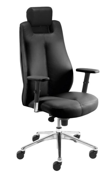 Fotel gabinetowy z wyraźnie wyprofilowanym oparciem oraz siedziskiem, funkcjonalnym regulowanym zagłówkiem, regulowanymi podłokietnikami i ergonomicznym mechanizmie.