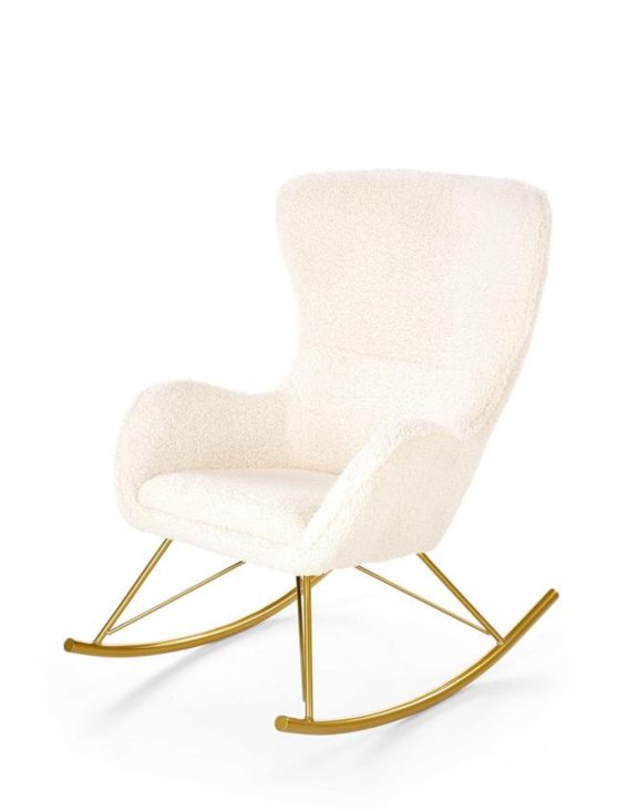 Urokliwa tkanina boucle w kolorze kremowym w połączeniu z niezwykle modnym stelażem w kolorze złotym ociepli każde wnętrze i nada przytulnego, domowego charakteru.
