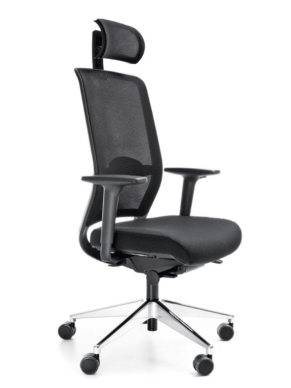 Nowoczesny, ergonomiczny, siatkowy fotel biurowy z zaawansowanym mechanizmem, regulowanych: zagłówkiem i podłokietnikami, a także Innowacyjną podporą lędźwiową.