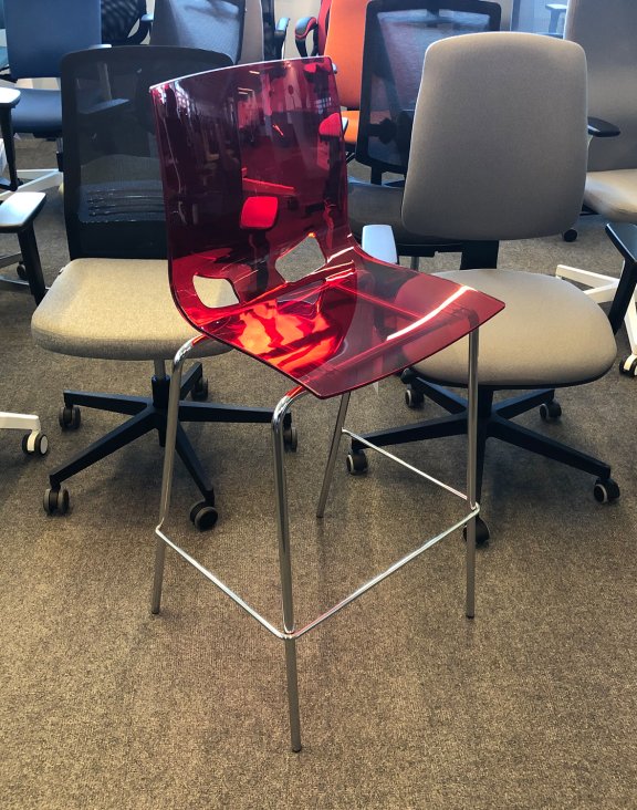 Kubełek w kolorze czerwonym (przezroczystym) , stelaż chromowany.