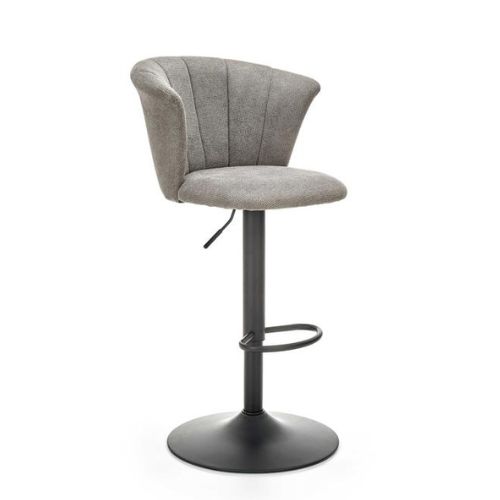 Siedzisko i oparcie tapicerowane są miękką tkaniną w kolorze szarym i beżowym.