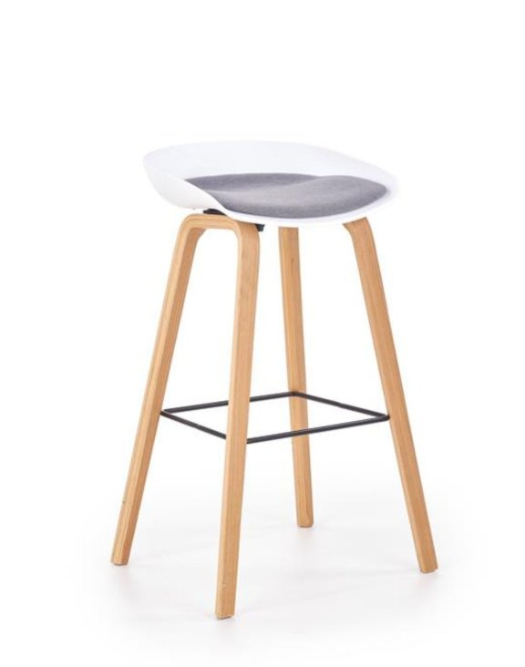 Ten hoker ma także praktyczny element - podnóżek w kolorze czarnym. Dzięki niemu możesz wygodnie opierać nogi podczas siedzenia, co dodaje komfortu podczas długich wieczorów spędzonych przy barze lub wyspie kuchennej.