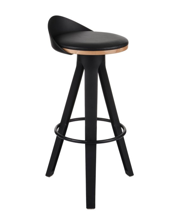 Siedzisko zbudowane jest na sklejce bukowej, tapicerowane skórą ekologiczną w kolorze czarnym. Jego wysokość to 78 cm.