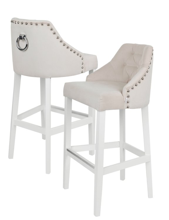 Krzesło jest niezwykle eleganckie dzięki ozdobnym pinezkom i kołatce. Pasuje zarówno do wnętrz inspirowanych stylem glamour, jak i tych nowoczesnych.