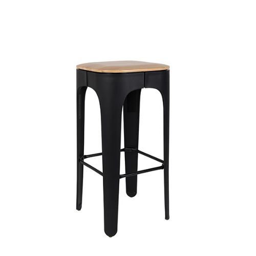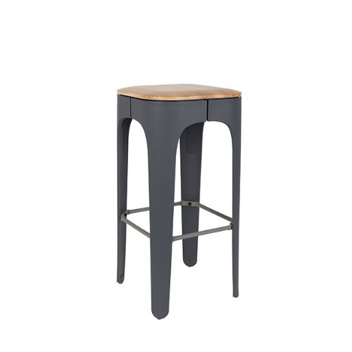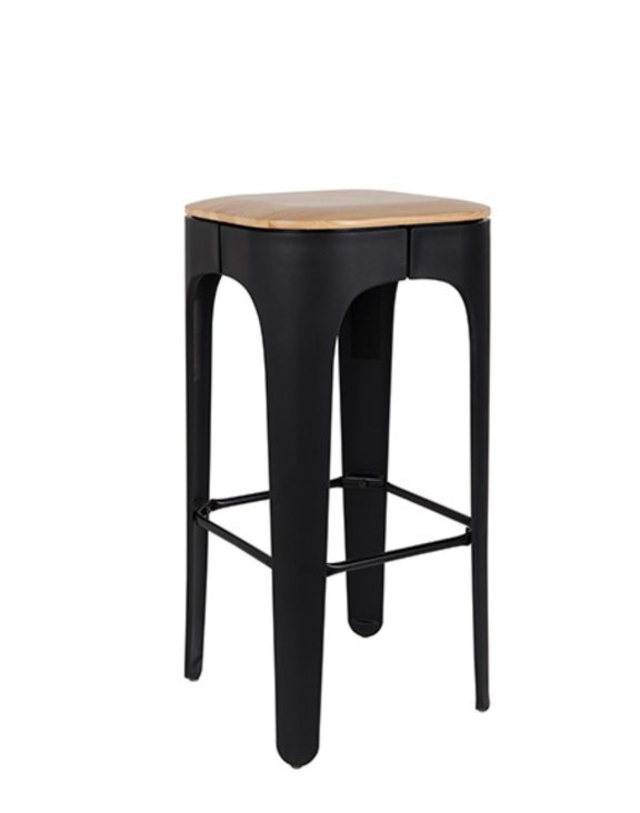 Siedzisko wykonane jest z litego drewna jesionowego, nogi z tworzywa sztucznego i podnóżek stalowy chromowany, malowany proszkowo na kolor czarny oraz szary. Kolor podnóżka przypisany jest do poszczególnego koloru nóżek.