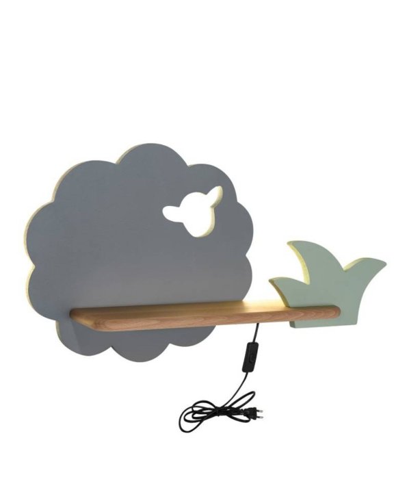 Sheep jest idealną lampką do mocowania obok łóżeczka dziecięcego, a półeczka może posłużyć jako dodatkowe miejsce na ulubionego pluszaka.