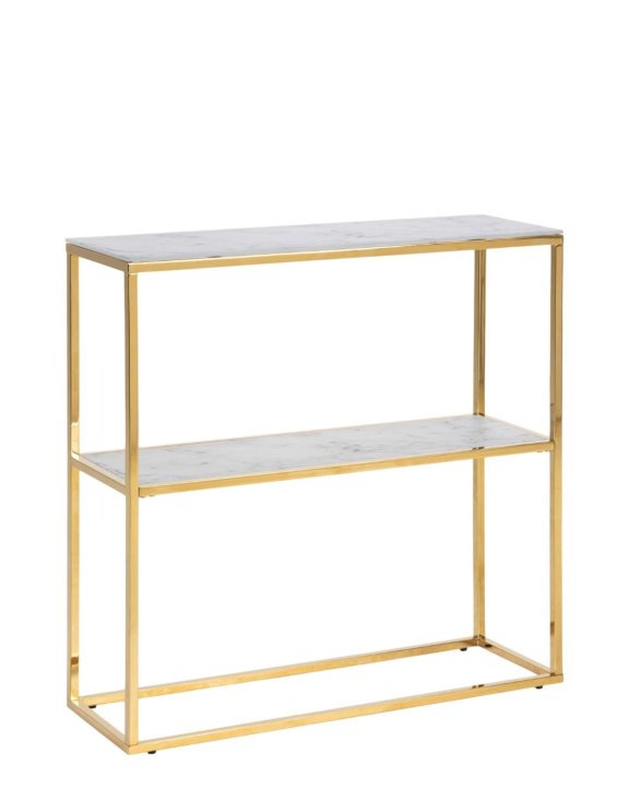 Konsola do przedpokoju Alisma marki Actona to elegancki i stylowy mebel, który doda wyrafinowanego charakteru twojemu wnętrzu. Posiada ona złoty, metalowy stelaż, który nadaje konstrukcji solidności i stabilności.