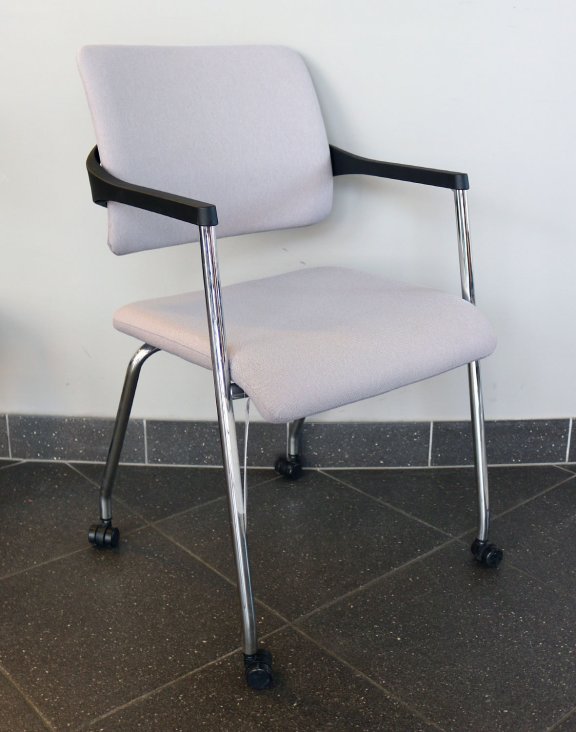 Stelaż krzesła opiera się na czterech metalowych nóżkach zakończonych mini rolkami (kółkami o średnicy 37mm), dzięki czemu krzesło można w łatwy sposób przemieścić.