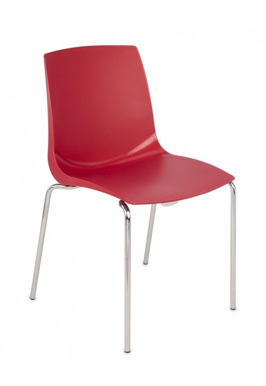 Krzesło na metalowych nóżkach z wyraźnie profilowanym siedziskiem i oparciem wykonanym z trwałego estetycznego plastiku (polipropylen, odporność UV).