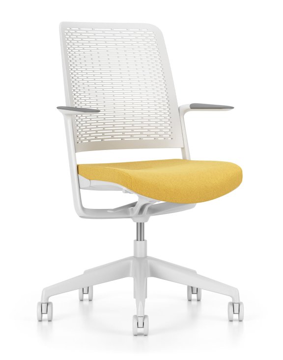 Całość konstrukcji zachwyca wizualną lekkością, która idzie w parze z rzeczywistą wagą krzesła, która wynosi zaledwie 10 kg. Dzięki temu z łatwością można je przestawiać i przenosić po całej powierzchni biura czy domu.