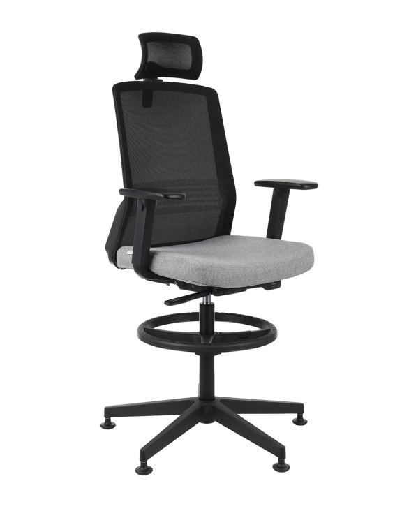 Ergonomiczne krzesło biurowe Coco BS HD RB marki Grospol o podwyższonym siedzisku z podnóżkiem o regulowanej wysokości i regulowanym zagłówkiem.