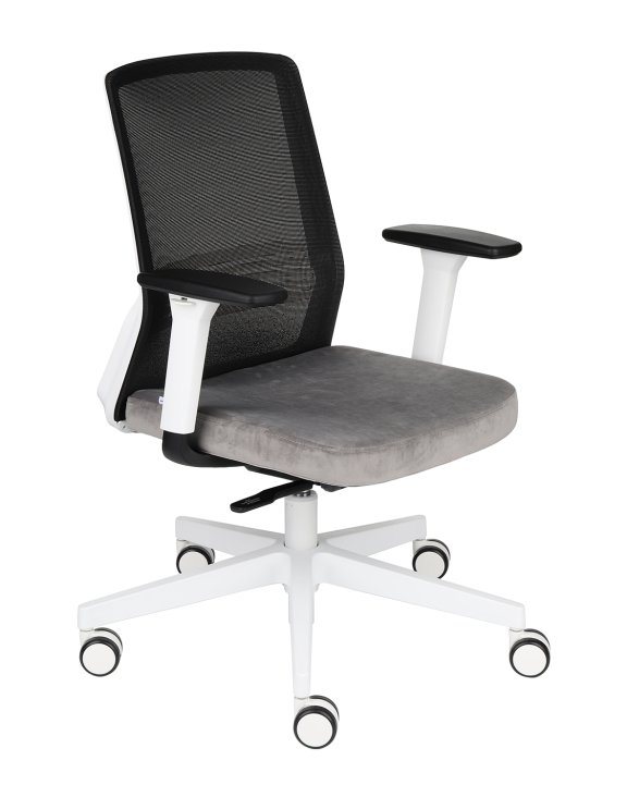 Oparcie tapicerowane jest czarną siatką o wysokiej odporności na ścieralność.