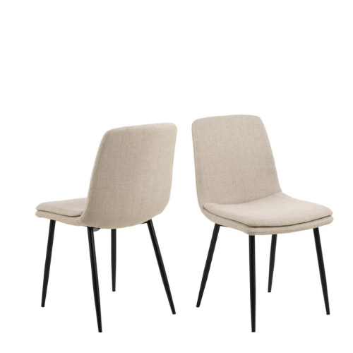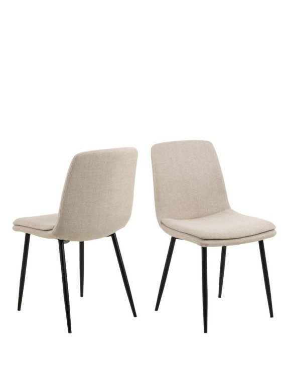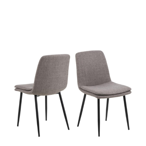 Krzesło do jadalni Becca marki Actona to eleganckie krzesło do jadalni, które jest tapicerowane szarą i beżową tkaniną z czarnymi, metalowymi nogami malowane proszkowo.