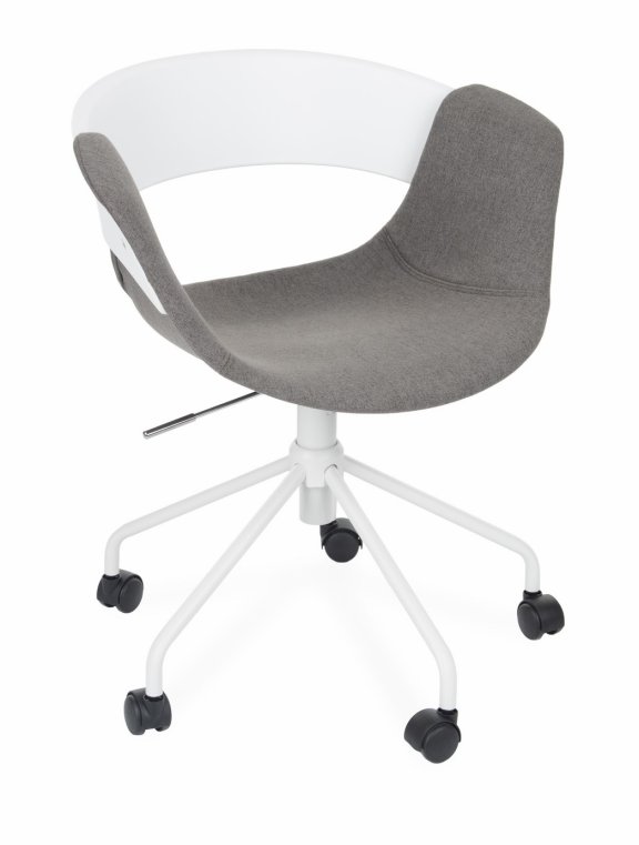 Obrotowe krzesło Forma Move cechuje wyraźnie profilowane oparcie, które zostało wykonane z trwałego, estetycznego białego plastiku (polipropylen).
