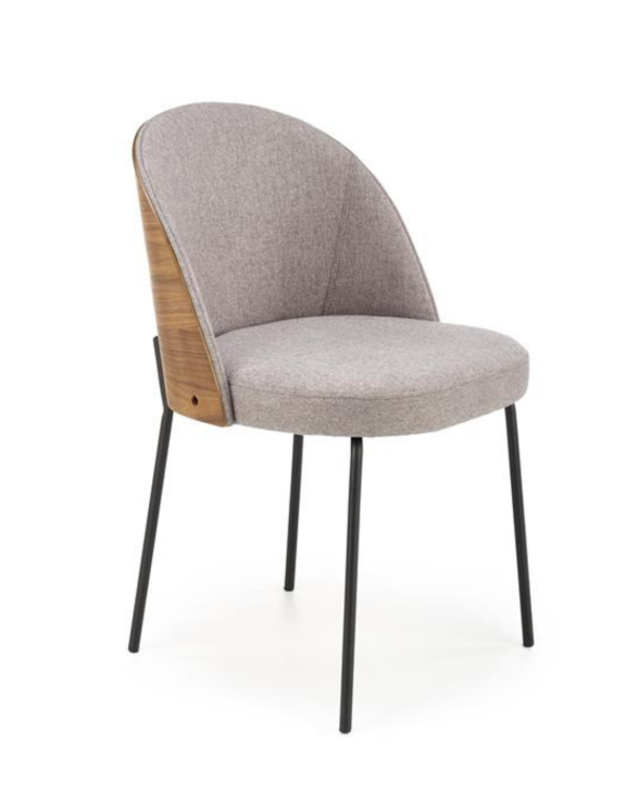 Przyjemna w dotyku tkanina, która otula krzesło prezentuje uniwersalny, ponadczasowy kolor, który harmonijnie współgra z drewnem oparcia.