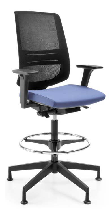 - Ergonomiczne krzesło obrotowe o podwyższonej wysokości siedziska, idealne do wysokich stanowisk pracy, lad czy w laboratorium itp.
