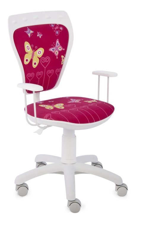 Krzesło obrotowe dziecięce z tapicerowanym siedziskiem oraz profilowanym tapicerowanym oparciem, cieszące się dużym uznaniem naszych Klientów.