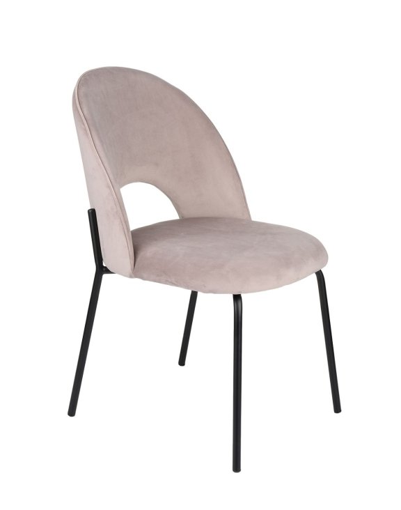 Krzesło do jadalni Molly Black w kolorze beżowym z czarnymi nóżkami i miękką w dotyku tapicerką i designerska forma oparcia wpisuje się swą estetyką w najnowsze trendy wnętrzarskie.