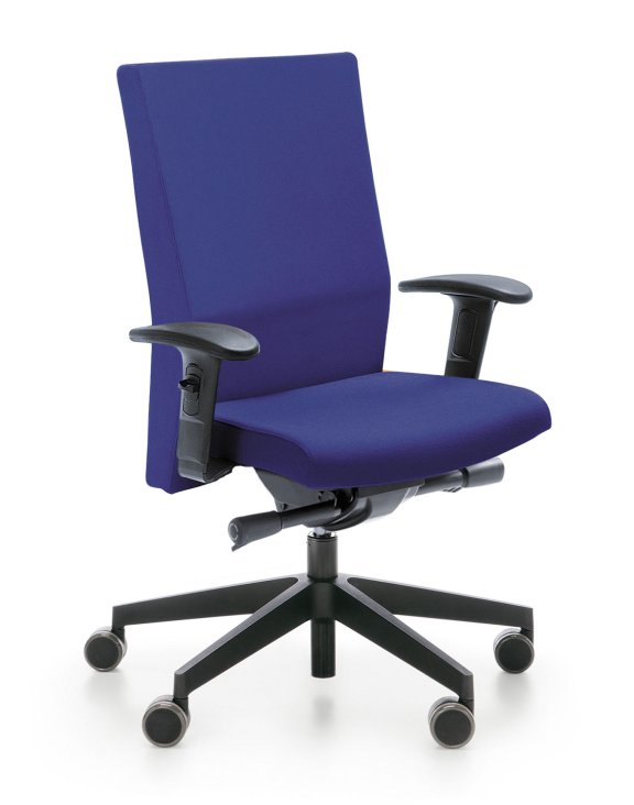 Regulacja podłokietników (wersja P54PU) "góra - dół" pozwala na ich ergonomiczne dopasowanie do wzrostu każdego użytkownika; odpowiednie ułożenie przedramienia (90 stopni względem tułowia) odciąża mięśnie pleców podczas długiej pracy w pozycji siedzącej.