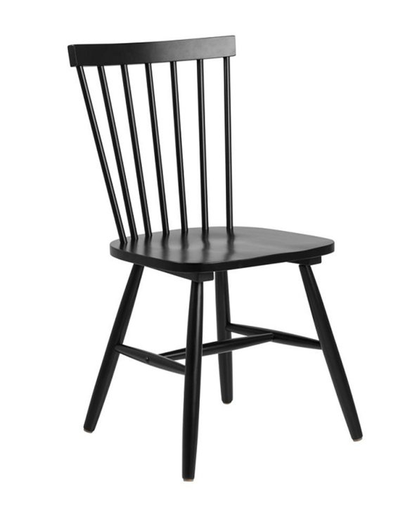 Krzesło w całości wykonano z drewna kauczukowego, które następnie wybarwiono na klasyczny czarny kolor. Wybarwienie drewna mogą Państwo zobaczyć w galerii produktu.