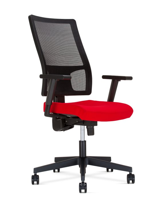 Podłokietniki w prezentowanej wersji (R19T) posiadają regulację wysokości co pozwala na ich ergonomiczne ułożenie przedramienia - 90 stopni względem tułowia - bez względu na wysokość Użytkownika. Odpowiednie ułożenie przedramienia odciąża mięśnie pleców podczas długiej pracy w pozycji siedzącej.