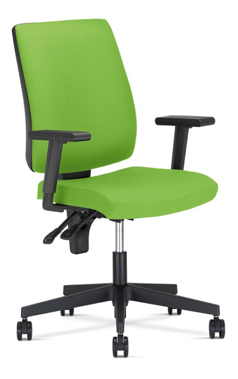 Podłokietniki (typ R19T) w prezentowanej wersji posiadają regulację wysokości co pozwala na ich ergonomiczne ułożenie przedramienia - 90 stopni względem tułowia - bez względu na wysokość Użytkownika. Odpowiednie ułożenie przedramienia odciąża mięśnie pleców podczas długiej pracy w pozycji siedzącej.