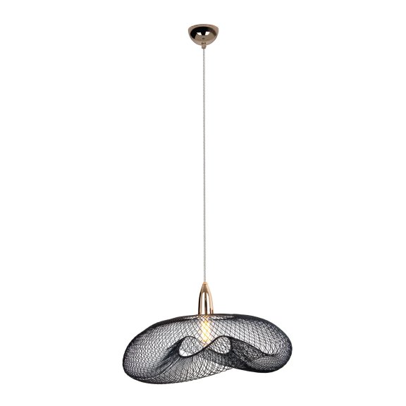Oprawa, fantazyjnie ukształtowana, wykonana z metalowej siatki stwarza w pomieszczeniu grę światła i cienia, nadając wspaniały efekt wizualny i aranżacyjny.