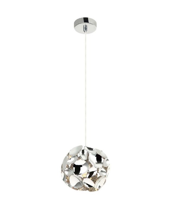 Klosz o średnicy 15 cm został wykonany z metalu w kolorze chrom. Tworzą go połączone ze sobą metalowe owalne szkiełka, w których pięknie odbija się światło.