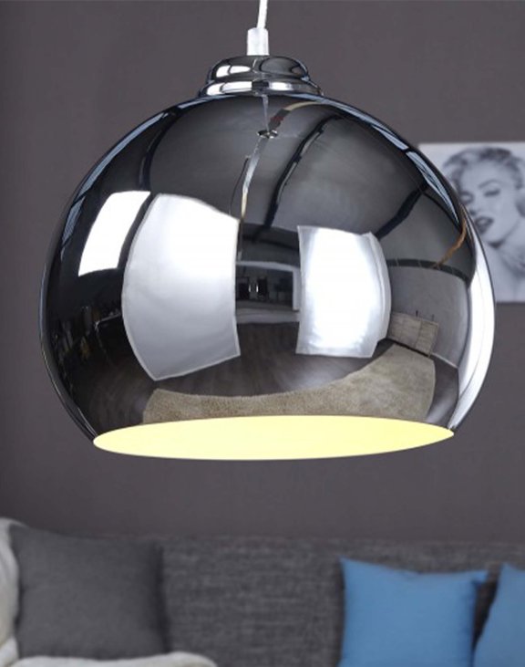 Okrągły kształt klosza oraz błyszcząca chromowana struktura sprawiają, że prezentowany mebel sprawdzi się we wnętrzach loftowych i modern.