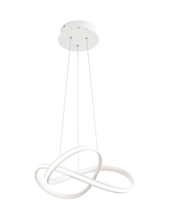 Żyrandol wyróżnia metalowe wykończenie w białej barwie o nowoczesnym kształcie serpentyny. Produkt jest niezwykle elegancki.