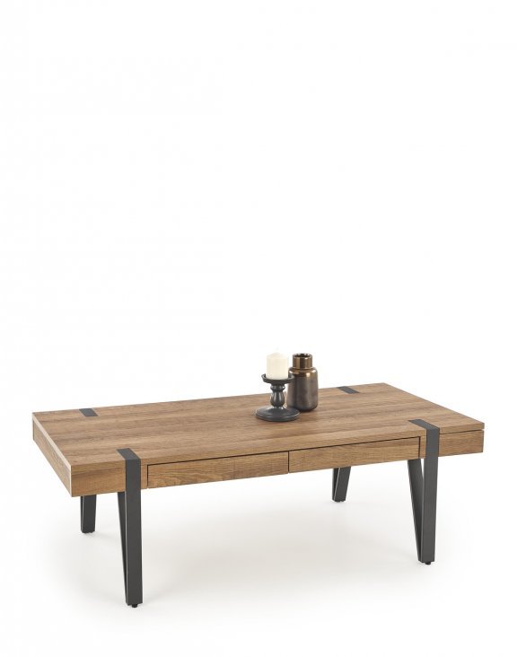 Ława Tuluza marki Halmar z szufladami, metalowym stelażem i blatem w kolorze drewna.