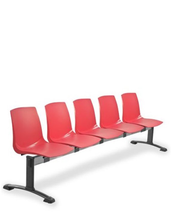 Ławka 5 - osobowa z rodziny Ari na stalowej, czarnej konstrukcji z wyraźnie profilowanymi siedziskami wykonanymi z trwałego i estetycznego plastiku (polipropylen, odporność UV, łatwozmywalny),