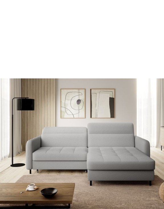 Narożnik ma kształt litery L. Boczne siedzisko może występować po prawej lub po lewej stronie. Wyboru ustawienia tego elementu dokonują Państwo w koszyku.