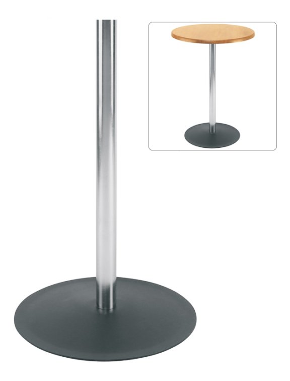 Podstawa doskonale pasuje przede wszystkim do blatów okrągłych, zajmuje bardzo mało przestrzeni; idealnie sprawdza się np: przy stoisku targowym, czy w firmowym bufecie.