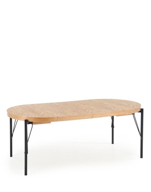 Rozkładany blat wykonany został z płyty MDF w okleinie dąb naturalny, który wzorowo oddaje strukturę naturalnego drewna.