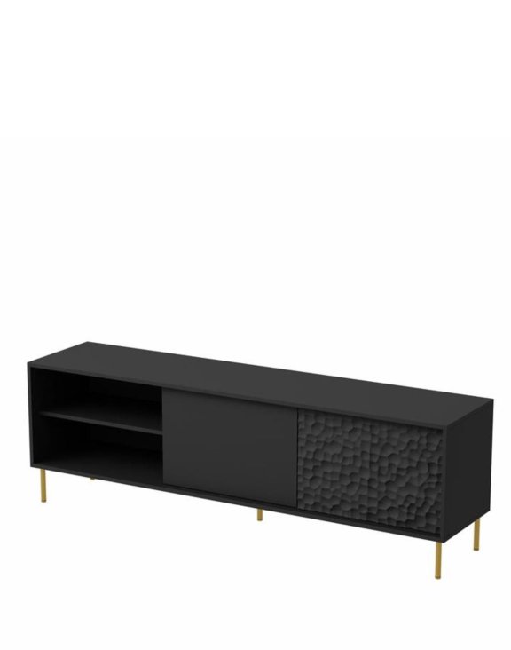 Szafka RTV-1 Bullet oferuje różnorodne opcje przechowywania. Półki otwarte zapewniają miejsce na umieszczenie sprzętu multimedialnego, konsoli, czy dekoracji, które chcemy wyeksponować. Natomiast zamknięte drzwiczki pozwalają na schowanie rzeczy, które niekoniecznie muszą być na widoku, a jednocześnie zapewniają ład i porządek w pomieszczeniu.