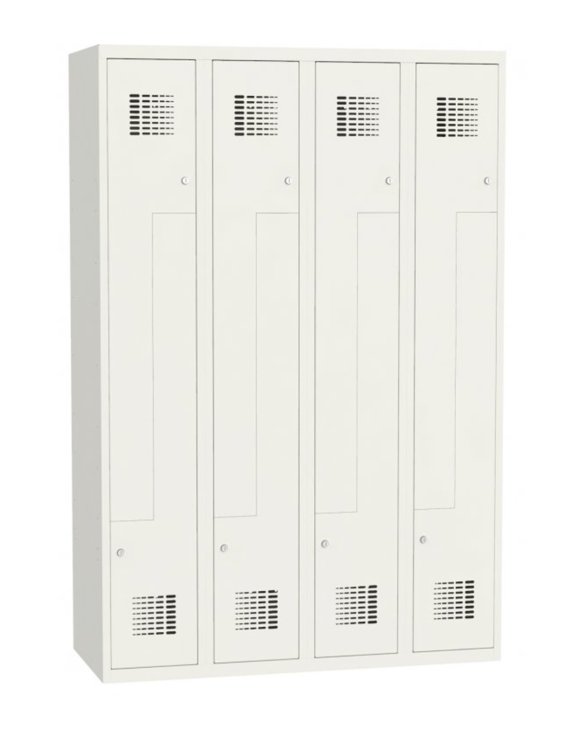 SUL 34 marki Malow to duża metalowa szafa z czterema kolumnami i ośmioma skrytkami na ubrania.